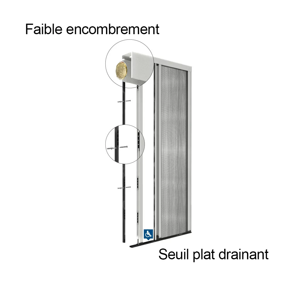 La moustiquaire PLISSÉ 22 est la solution idéale pour une installation dans des espaces très réduits. En effet elle s’intègre parfaitement à votre habitation grâce à ses profils très étroits et à son esthétique épurée. Son seuil drainant en alu de 7 mm d’épaisseur est idéal pour un passage fréquent ou pour les personnes à mobilité réduite.